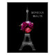 Bonjour Beauté Poster: Eiffelturm in Silber schimmern, mit rosa und Lila Peonies verziert. Passen Sie mit Ihrem Namen oder einer Personalisierten Nachricht an. Embrace Elegance und Say Hallo, schön mit diesem faszinierenden und vielseitigen Kunstwerk