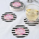 Hallo Schöner Schwarzer Streifen und rosa Wasserfa Runder Pappuntersetzer