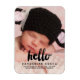 Einfaches Foto Baby Birth Announcement Magnet für einen Jungen oder ein Mädchen. Elke Clarke © Andere Farben und Stile in unserem Shop unter www.zazzle.com/monogramgallery verfügbar. Schwarzes Skript mit dem Wort "hello" Foto Overlay Design.