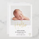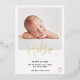 Eine moderne, niedliche, einfache und elegante reale Goldfolie-Schrift hallo typografie Baby-Geburtsankündigung mit 1 Foto Gitter-Collage und einer eleganten Typografie Kalligraphie, mit hallo Baby-Namen. Das Baby vorstellen! Die weiße Hintergrundfarbe ist vollständig editierbar