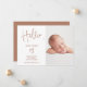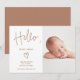 Eine moderne, einfache und elegante Schrift hallo typografie Baby Geburtsankündigung mit 1 Foto Gitter Collage, und eine elegante Typografie Kalligraphie, mit hallo Babyname. Das Baby vorstellen! Die boho Terracotta Hintergrundfarbe ist vollständig editierbar.