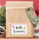 Ein Aufkleber mit einem Bild eines sommerlichen Musters von Popsikeln und Eis in Aquarellen. Hallo Sommer geschrieben in einem lustigen trendigen Schriftart.