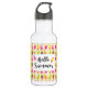 Eine Wasserflasche mit dem Bild eines sommerlichen Musters von Popsikeln und Eis in Wasserfarben. Hallo Sommer geschrieben in einem lustigen trendigen Schriftart.