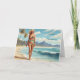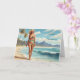 Hallo Sommer Retro Lady Walking am Strand Karte
