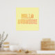 Dieses hellgelbe Poster mit "Hello Sunshine" Retrostil-Typografie in Gelb, Orange und Rosa verleiht jedem Zimmer einen unterhaltsamen und fröhlichen Akzent.