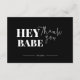 Lassen Sie Ihre Kunden mit dieser kühnen und modernen "Hey Babe"-Dankeskarte lächeln – perfekt für Verpackungseinsätze in kleinen Unternehmen. Entworfen mit einer stilvollen Mischung aus klassischer Serif- und eleganter Skript-Typografie, verleiht diese Karte jeder Bestellung Persönlichkeit und Wärme.