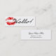 " Hallo!" im einfachen Skript und im roten Lippenstiftkennzeichen gegen weißen Hintergrund. Einfache und elegante Schwarzweiss-Visitenkarte für Geschäft oder persönlichen Gebrauch.
