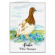 Eine leere Grußkarte, die mit einem Willow Ptarmigan dekoriert ist, der in einem Stück vergessene, nicht vergessene Wildblumen mit der Alaskan-Tundra und schneebedeckten Bergen im Hintergrund mit Aquarellmalung spaziert. Inspiriert von der Staat Vogel und Staat Blume von Alaska.