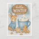 Hallo Winter.Cosy Reindeer, Hot Cocoa, Gingerbret Postkarte