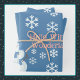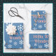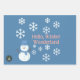 Ein Slice of Life and Delight präsentiert Hallo, Winter Wonderland, ein Set aus Packpapier-Blätter mit einem Schneemann mit weißen Schneeflocken, rosa Schrift und einer blauen Kulisse. Der Schneemann hat auch einen blauen Hut und Schal.