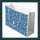 Ein Slice of Life and Delight präsentiert Hallo, Winter Wonderland Geschenktaschen. Die Taschen sind mit einem Schneemann mit weißen Schneeflocken, rosa Schrift und einer blauen Kulisse geschmückt. Die Snowman Geschenktaschen sind mit einem blauen Hut und Schal versehen.
