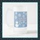 Ein Slice of Life and Delight präsentiert Hallo, Winter Wonderland mattierte Glass-Kaffeebeuge mit einem Schneemann mit weißen Schneeflocken, rosa Schrift und einer blauen Kulisse. Die Tasse des Schneemanns sind mit einem blauen Hut und Schal versehen.