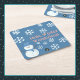 Ein Slice of Life and Delight präsentiert die Winter Wonderland Untersetzer mit einem Schneemann, der mit weißen Schneeflocken, rosa Schrift und einer blauen Kulisse geschmückt ist. Die Schneemann-Untersetzer haben auch einen blauen Hut und Schal.