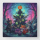 Feiern Sie die Saison mit einer Drehung des Unerwarteten. Die Mischung aus Halloween-Lakokiness und Weihnachtsjubeln mit einem dekorierten Baum, der mit einer glühenden Jack-o'-Laterne überzogen und mit Augäpfeln, Würmern und Kerzen geschmückt ist. Rund um sie sind vier skurrile Waldtiere, ein Bär mit Fledermausflügeln und ein Schädelhut, ein Rabe in einem oberen Hut, und zwei Füchse, die Geschenke unter einem sternförmigen, verzauberten Himmel teilen. Dieses Design ist perfekt für Fantasy-, Gotik- und Urlaubsmaschinen geeignet und bringt spielerisches Geheimnis und magische Wärme in jeden festlichen Raum.