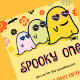 Halloween 1. Geburtstag Einladungen spooky eins: Spooky Halloween 1. Geburtstag Einladung Design mit niedlichem Geist, halloween Thema, Groovy, 70er, 70er, Blumen.