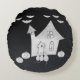 Halloween-Abend mit Spuk Haus, Fledermäusen, Kürbi Rundes Kissen