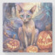 Halloween Abessinerkatze mit Kürbis Beängstigend Steinuntersetzer