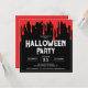 Elegante Tropfen erwachsene Halloween-Party Einladung mit schwarzem Hintergrund, weißem Text, blutorange mit Rottönen Details und Hintergrund.