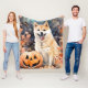 Halloween Akita mit Pumpkins Beängstigend Fleecedecke