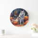 Halloween Alaskan Malamute mit Pumpkins Beängstige Große Wanduhr