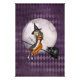 Ein Halloween-Elke fährt ihren Besen über den Mond, mit der Cheshire-Katze im Schlepptau.