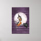 Ein Halloween-Elke fährt ihren Besen über den Mond, mit der Cheshire-Katze im Schlepptau.