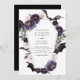 Halloween 31. Oktober Herbst Herbst Dunkle Wasserfarbe Lila und Grüne Hochzeitseinladungen auf schwarzem Hintergrund - beinhaltet eine beängstigende und elegante Schriftzeichen-Typografie mit modernen Blume und Bat Wings für die besondere Creepy Wedding Day Feier.
