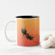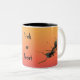 Diese Halloween-Tasse zeichnet sich durch ein skurriles Design von zwei größeren Ameisen aus als lebende Ameisen, die über eine farbenfrohe Orangenoberfläche tanzen, goldfarben und lila. Der Text lautet: Trick or Treat. Es kann individuell angepasst oder entfernt werden.