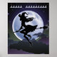 Halloween auf einem Broom mit Vollmond-Poster Poster