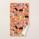 Niedliche Halloween-Hunde aus Australien in spitzigen Kostümen. Aussie Hunde mit verschiedenen Fellfarben halten Trick-oder-Leckerei Kürbis, tragen Hexenhüte und Pullover mit verstreuten Fledermäusen, Pfoten und Hundeknochen.