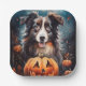 Halloween Australischer Schäferhund mit Pumpkins B Pappteller