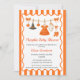 Feiern Sie Ihren kleinen Kürbis mit diesem Halloween Baby Duschmädchen-Design in festlich orange und schwarz. Eine niedliche Einladung mit Kürbis und witzigen Details, perfekt für eine Herbstdusche.