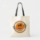 Kleine Tote Tasche in natürlicher Farbe mit schwarzen Riemen mit einem festlichen Halloween schwarzen Katze und Kürbisprint. Passen Sie dieses Objekt an oder kaufen Sie, wie es ist.