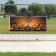 Dieses Banner wird mit einem festlichen Halloween-Kürbis-Druck gezeigt. Draußen gezeigt. Passen Sie dieses Banner an oder kaufen Sie, wie es ist. Wählen Sie aus vielen Größen, innen oder außen.