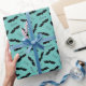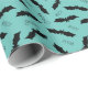 Halloween Fledermausverpackungspapier mit 'Boo' und 'Spooky' Text auf aquamarin/türkisfarbenem Hintergrund. Die Hintergrundfarbe kann im Designwerkzeug geändert werden. Matching-Elemente verfügbar. Kunstwerke von Künstlern eigene Illustrationen. Bitte kontaktieren Sie mich für die Anpassung und spezielle Anfragen. © Zoe Chapman Design
