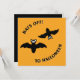 Niedlichen kleine Fledermäuse wünschen sich ein fröhliches 'Fledermäuse off to Halloween' in dieser festlichen digitalen Illustration. Eine individuelle Einladung ist für Sie bereit. Frohe Halloween!