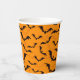 Der Papierbecher aus Halloween-Party wird mit einem Fledermausdruck gezeigt. Passen Sie dieses Objekt an oder kaufen Sie, wie es ist.