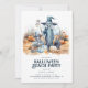 Mit dieser Halloween Beach Party Einladung können Sie Ihre Sportaktivitäten am Strand genießen. Das Design zeigt ungewöhnliche Illustrationen von Hexen, Skeletten und Kürbissen in einer Aquarelllandschaft.
