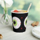 BOO! Bekomme jetzt keine Angst. Eyeball, der Spaß macht und trick oder behandelt. Illustration eines beängstigenden Augapalls, der nach Halloween-Leckereien sucht. Das perfekte zeitgenössische Halloween-Kunstdesign, ideal für ein Halloween-Geschenk, Geburtstagsgeschenk, Dekoration des Halloween-Party, Dekoration des Kinderzimmers, Kinderspielkunst, Wohngestaltung und Halloween-Kleidung.