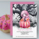 Halloween Beängstigende rosa Spuk Figur mit einem rosa Kürbis und sprichwörtlichem Baum in einem dunklen Wald. Personalisierte Halblows je Party Einladung von Ricaso