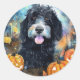 Halloween Bernedoodle mit Pumpkins Beängstigend Runder Aufkleber