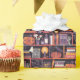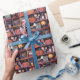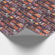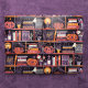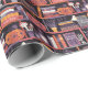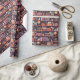 Halloween-Packpapier mit einem Muster mit einer spukhaften Bibliothek, Jack-o'-Laternen und Fledermäusen. Ideal zum Verpacken von Gastgeschenken oder Geburtstagsgeschenken im Oktober. Originelle Kunstwerke von Marketa Stengl.