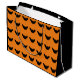 Große Größe Party Geschenktasche mit Black Bat Kunstwerk Design-Bild von TheFabricSeal at Zazzle ist eine niedliche und schlichte einsame Fledermaus mit Hintergrundfarben Halloween Orange und Halloween Lila Illustration zeichnend Silhouette Stil mit peekaboo Pechaki-Grün und Kürbisorange Augen suchen nach Freunden und Beute gleichermaßen und eine coole dunkle Halloween Abenteuer, Goblins, Goblins, Geister und Geister.