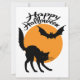 Halloween Black Cat and bat with moon, halloween Karte