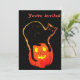 Halloween Art schwarze Katze glühend mit Höcker auf Orange glühenden Kürbis vorne mit orangefarbenem Text Sie sind eingeladen. Zurück hat schwarzen Hintergrund mit orangefarbenem Text füllen Sie Ihre eigenen Informationen. Cartoon-Design.