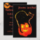 Halloween Black Cat atop Glows Orange Pumpkin Einladung