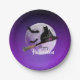 Halloween Black Cat auf Broom Full Moon Pappteller