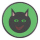 Dieser phantastische Hockeypuck hat eine schwarze Katze mit spitzen Ohren, leuchtend grüne Augen und ein leicht rotes Grinsen. Dieses gruselige Kätzchen ist perfekt für Halloween- oder Katzenliebhaber.