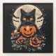 Halloween Black Cat, Moon & Pumpkin Glasuntersetzer