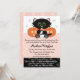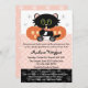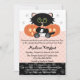 Diese Halloween-Babydusche lädt eine junge Mutter ein, die erwartet, dass ein kleines Mädchen süßer ist als unangenehm. Ein niedliches schwarzes Kätzchen mit grünen Augen hält eine Milchflasche und trägt ein Paar weiße Windeln mit einem rosa Button. Das süße Kätzchen sitzt süß vor einem Orangenkürbis-Jack oder Laternen auf einem rosa und schwarzen Polk-a-dot und paw-bedruckten Hintergrund. Passen Sie es an, um zu sagen, was Sie gewollt haben. Kunstwerk und Illustration © Chrissy H. Studios, LLC.Alle Rechte vorbehalten.